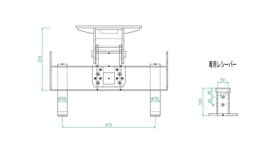 付属品:ピントルフック(4.5t用)、専用レシーバー(□50~□51用)